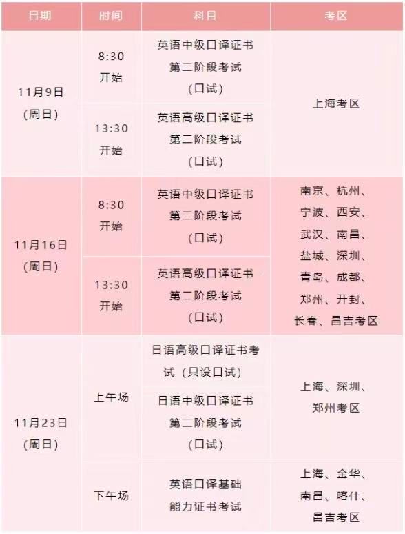 注:11月16日的考试,昌吉考区仅开放英语中级口译证书第二阶段考试(口试),具体科目以报考系统为准。